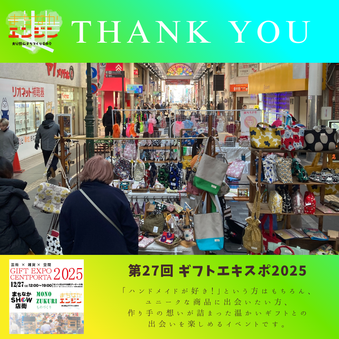 【開催終了】ギフトエキスポ2025 第27回 2025年度 ギフトエキスポ2025(第27回) ご参加いただき、ありがとうございました。 出店者:20店舗開催日:2025年12月27日(土) 主催:大分都心まちづくり委員会(まちなかエンジン)運営・企画:大分市中央町商店街振興組合事業名:ギフトエキスポ この記事をSNSでシェア!