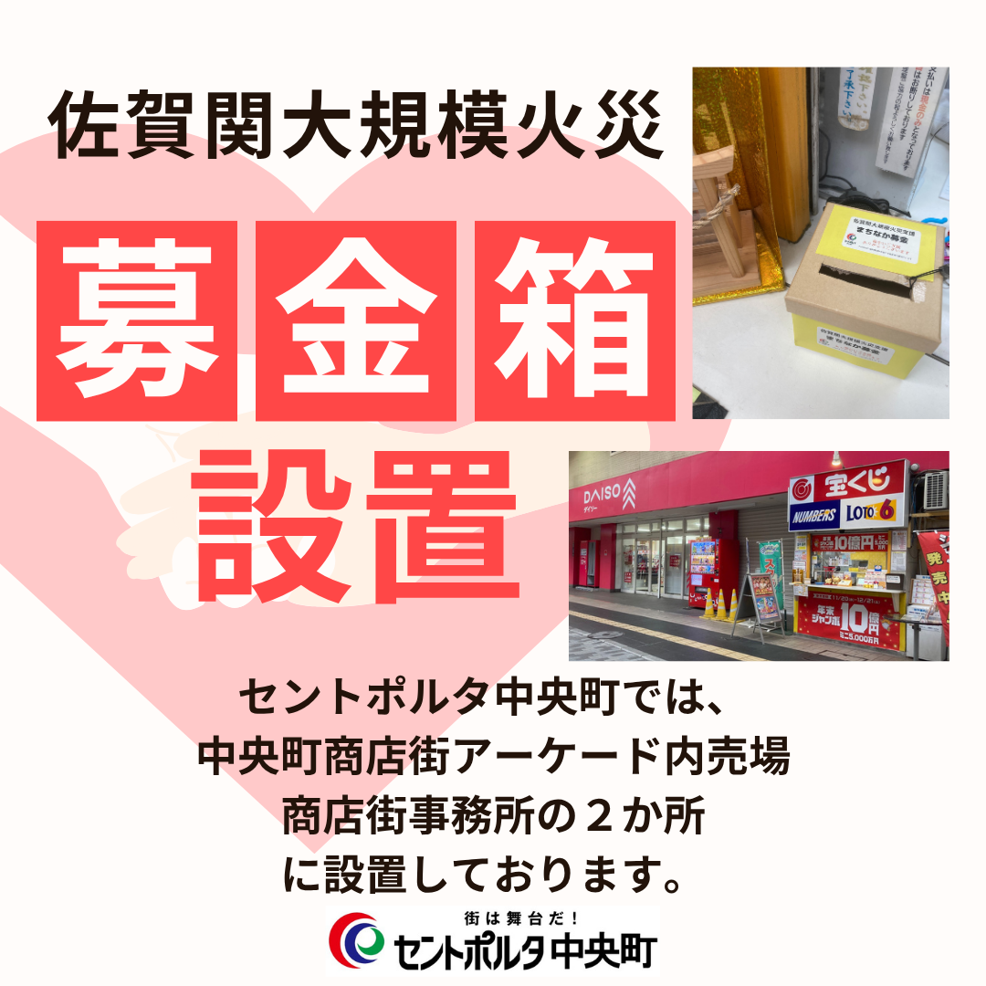 多くの地域住民・事業者の皆さまが甚大な被害を受けている状況を踏まえ、セントポルタ中央町商店街が所属する大分市商店街連合会は、株式会社トキハ・株式会社JR大分シティと連携し、被災地域の一日も早い復興支援を目的に「佐賀関大規模火災支援募金」を実施いたします。